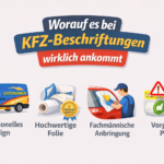 Eine gelungene KFZ-Beschriftung ist das Zusammenspiel aus Design, Materialqualität und fachgerechter Umsetzung. Wer hier auf Qualität setzt, investiert nicht nur in Werbung, sondern auch in ein professionelles Erscheinungsbild – jeden Tag, überall unterwegs.